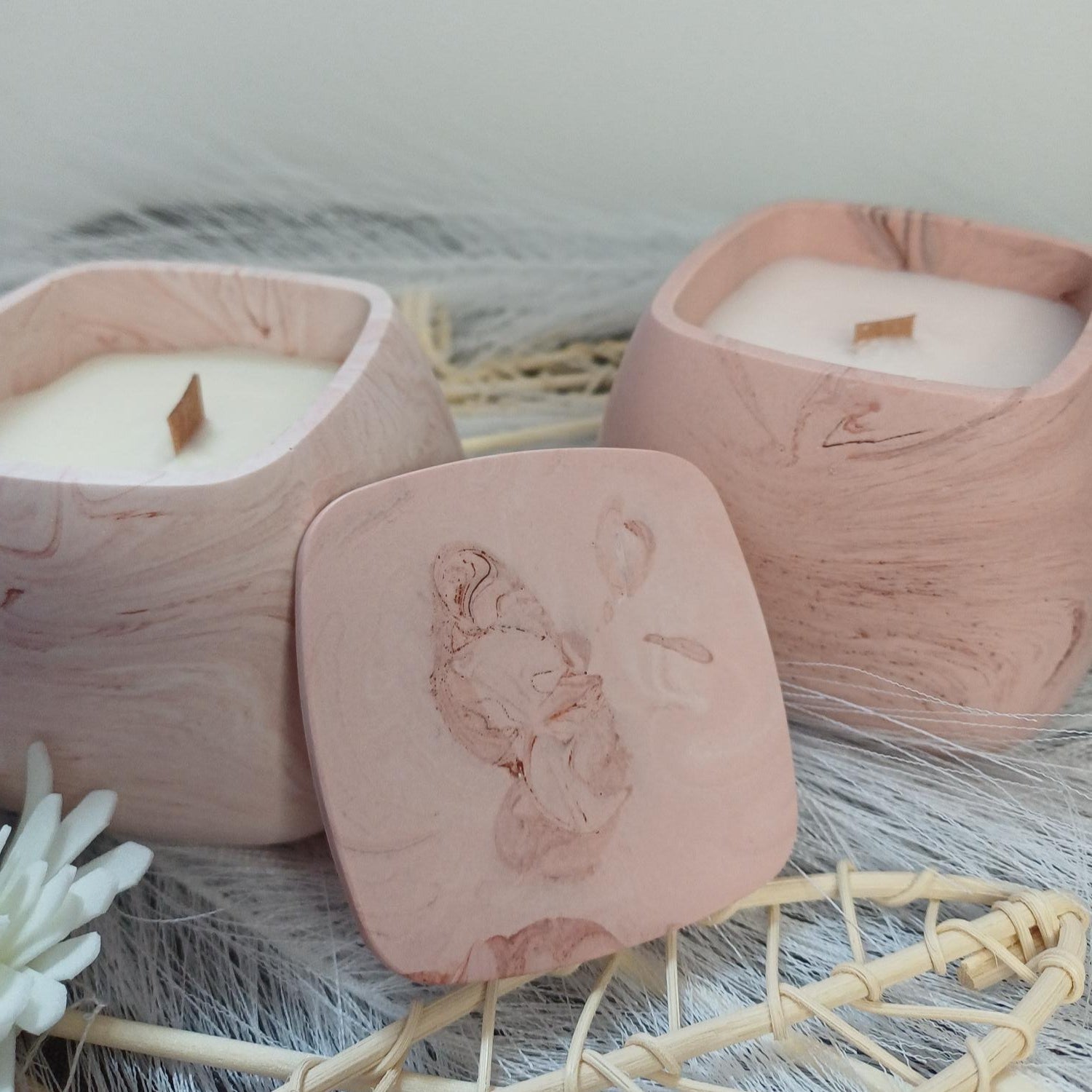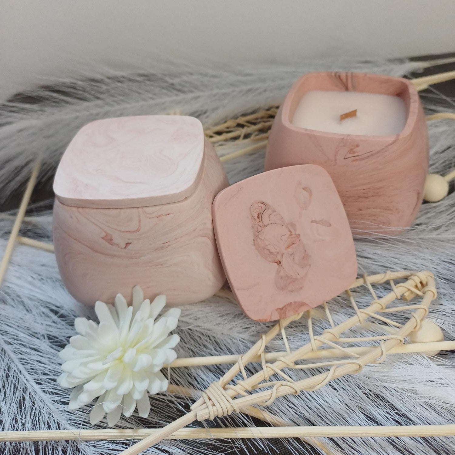 Cubric - Bougie parfumée et bougeoir en jesmonite