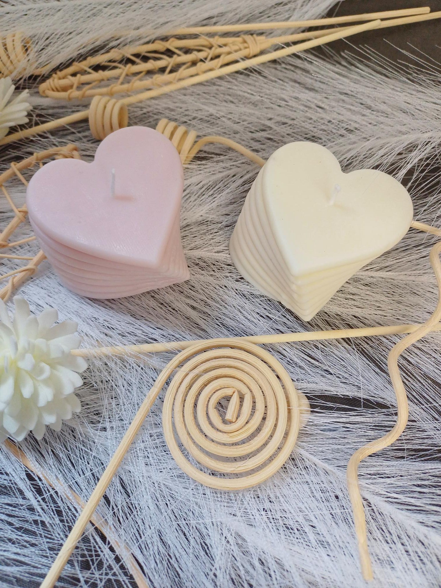 Petite bougie d'amour, haut de 4.5 cm, remplit d'environ 90 gr de cire naturelle et de love.